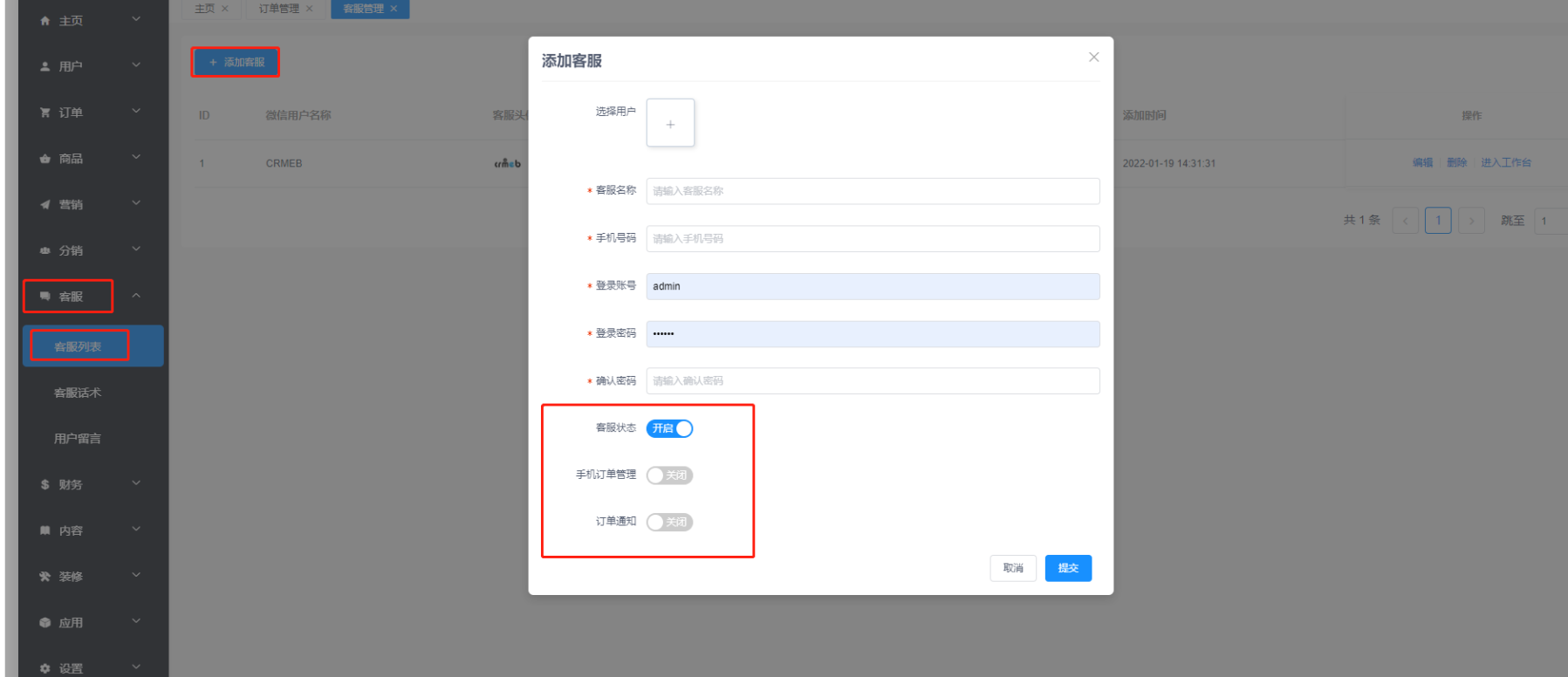#前端订单处理 ####前端订单处理 ###设置权限 #####客服 > 客服列表 > 添加客服  ###设置客服权限  ###统计管理 ###个人中心 > 统计管理  ###查看统计  ###处理订单
