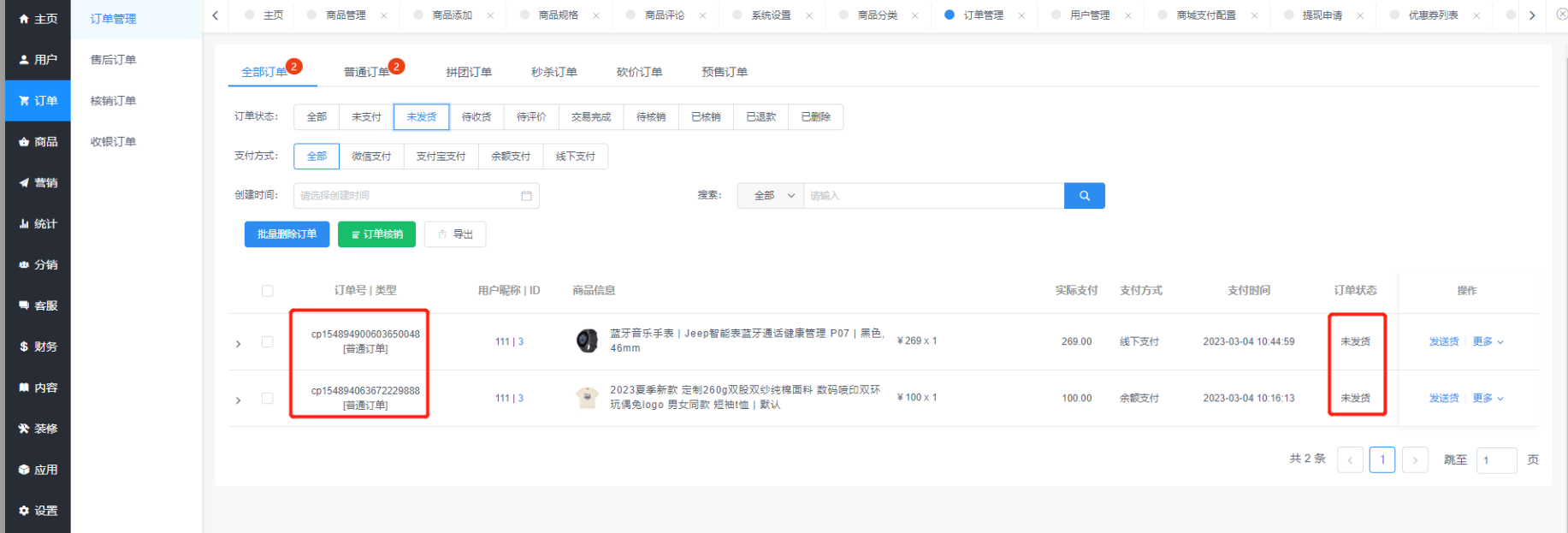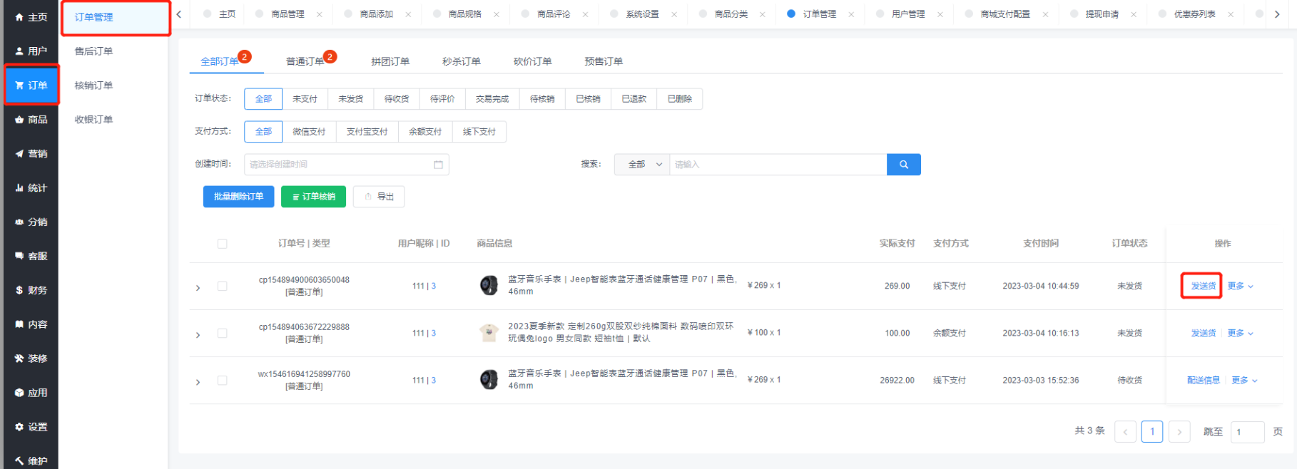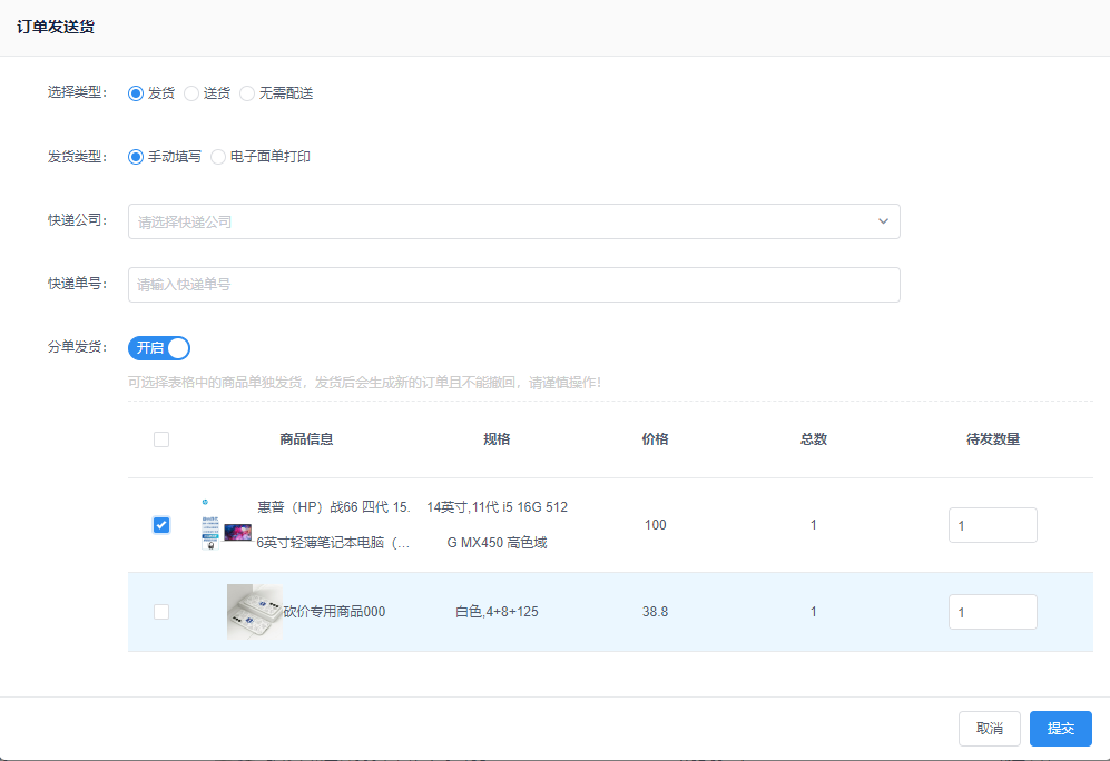 一个订单有多个商品时 可能需要拆分订单商品 分别发货