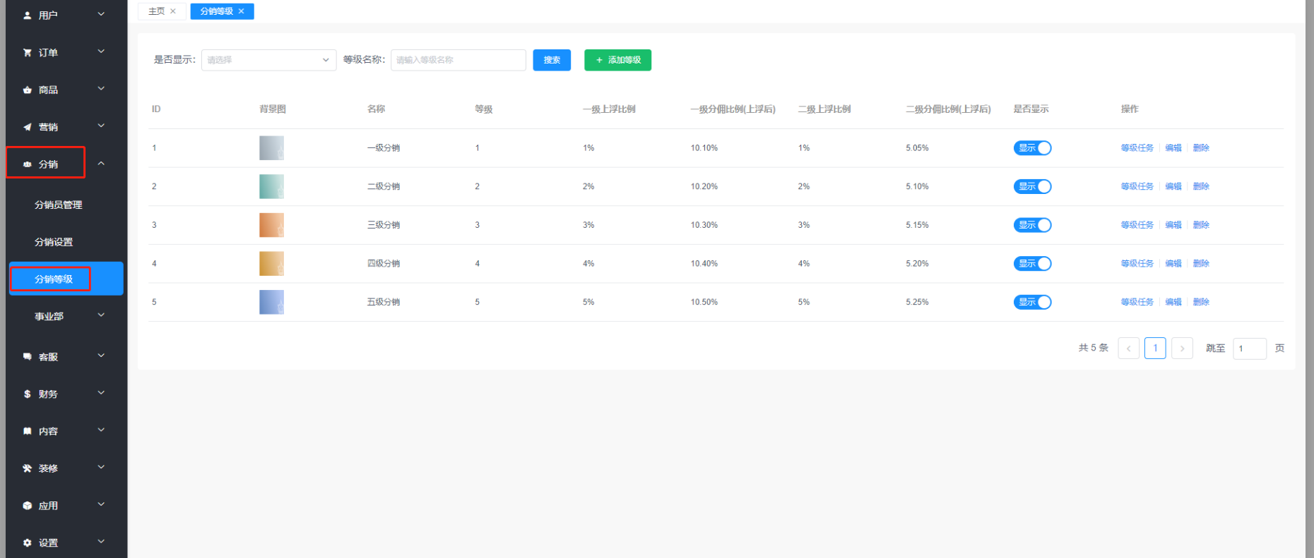 (1)设置分销员等级(2)设置等级任务(3)设置分销员等级对应的佣金上浮比例