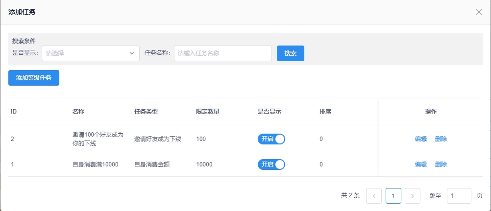 说明:需要同时满足设置的几个等级任务才能升至当前等级