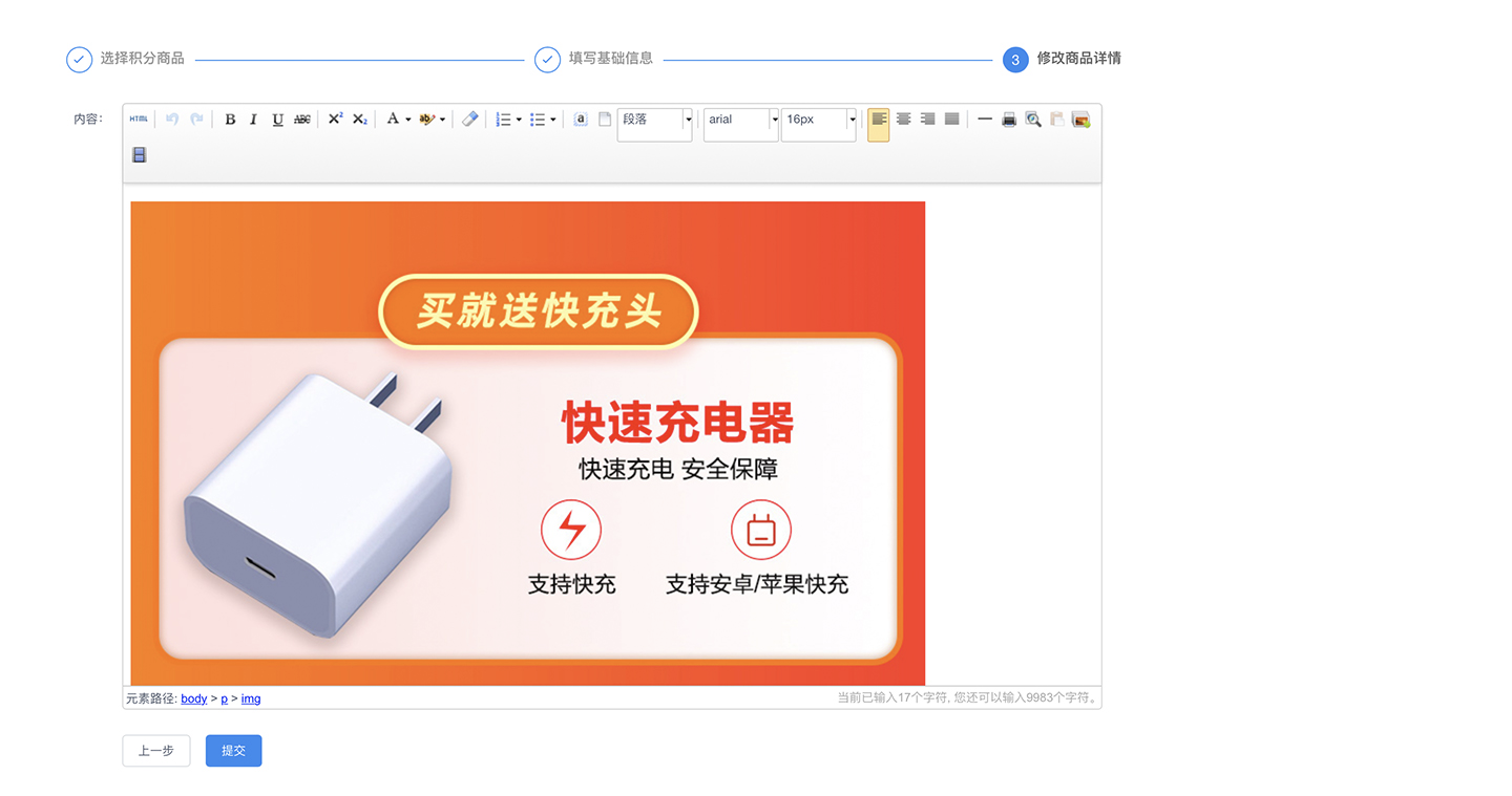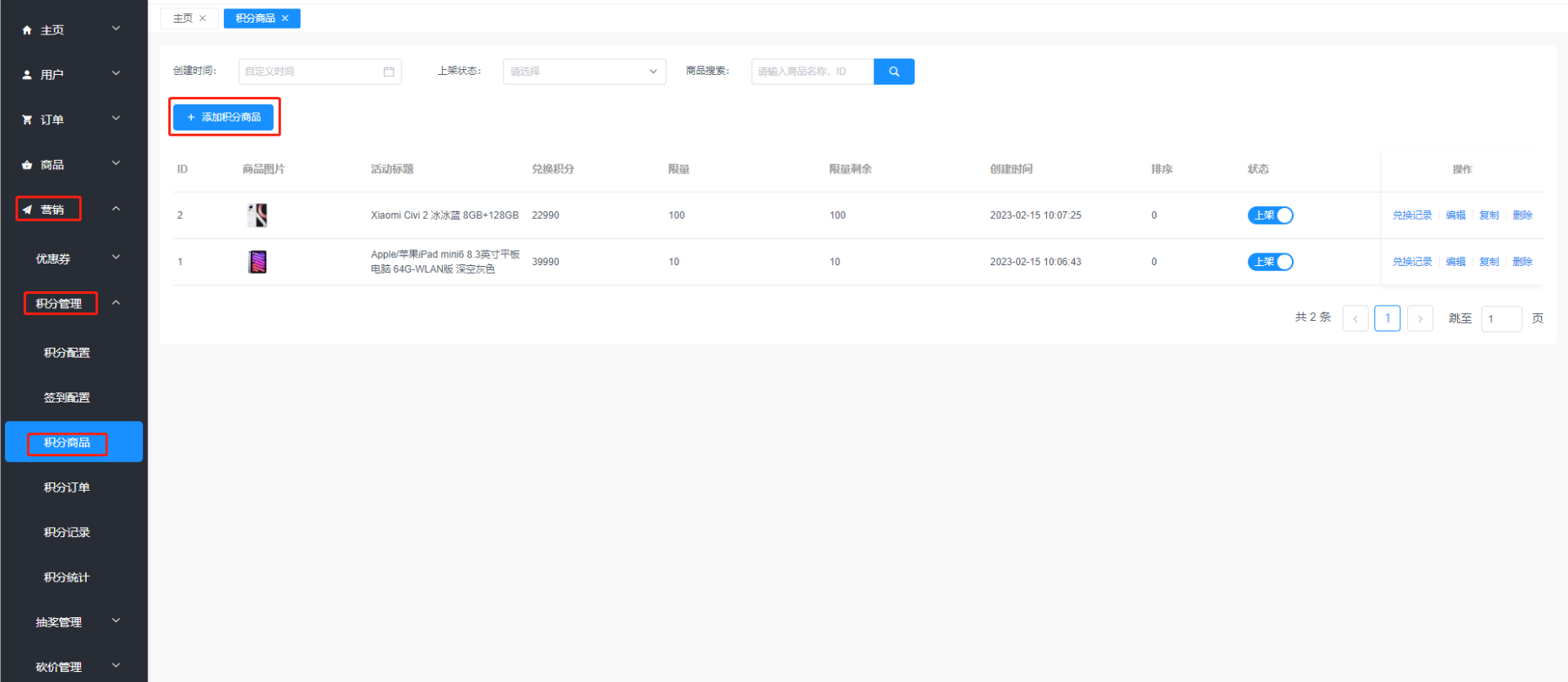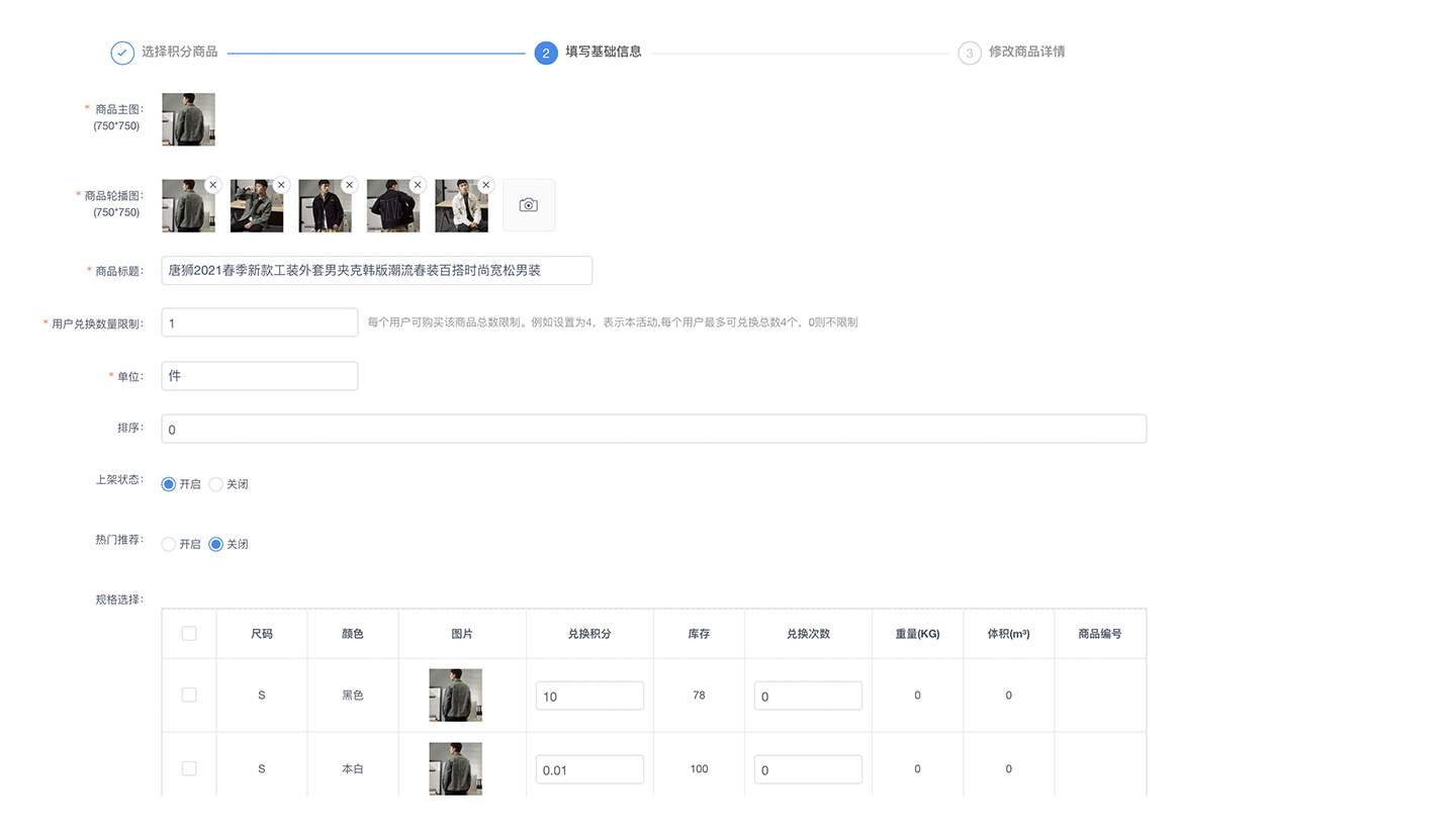 位置: 营销 》积分管理 》积分商品 》添加积分商品