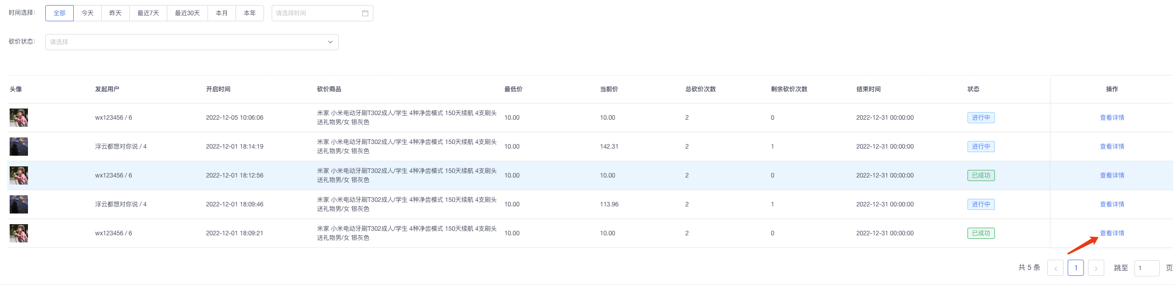 #砍价列表 ##砍价列表 ####通过砍价列表可以查看具体的砍价信息 ####通过详情可以查看砍价人信息及砍价金额