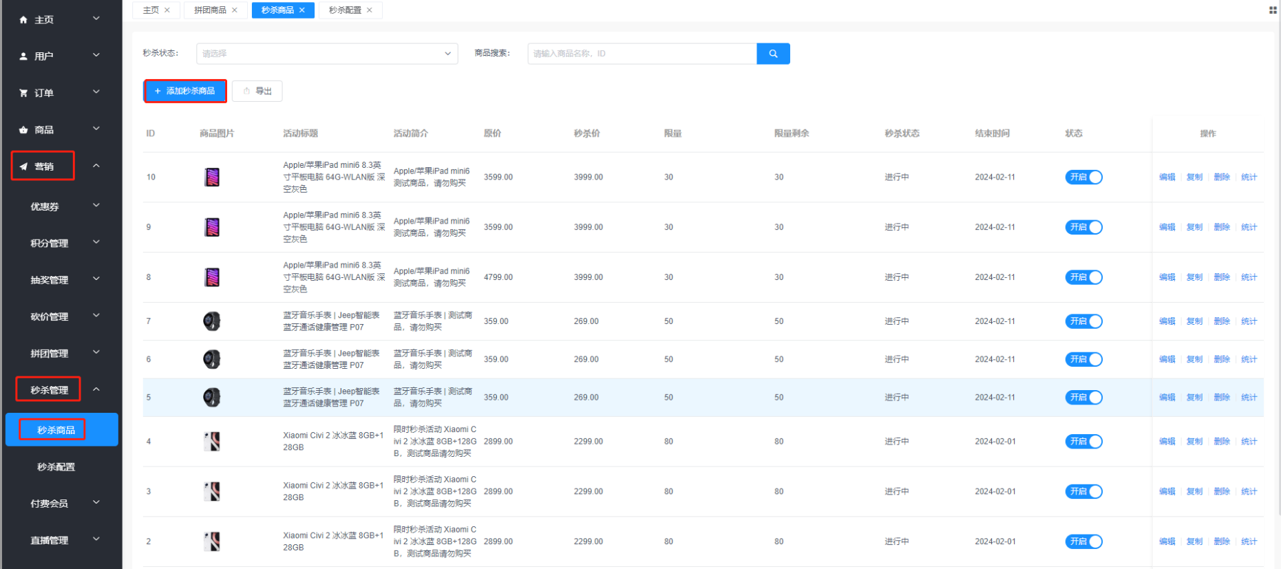 位置: 营销 > 秒杀管理 > 秒杀商品