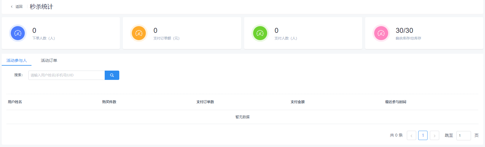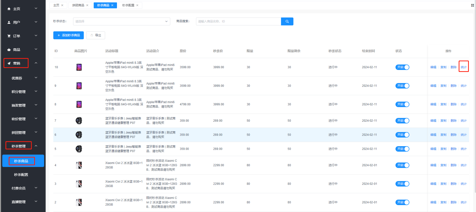 秒杀商品列表右侧操作可以跳转到每个商品的统计页面