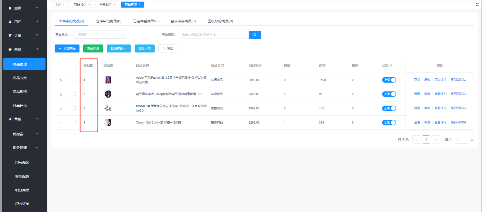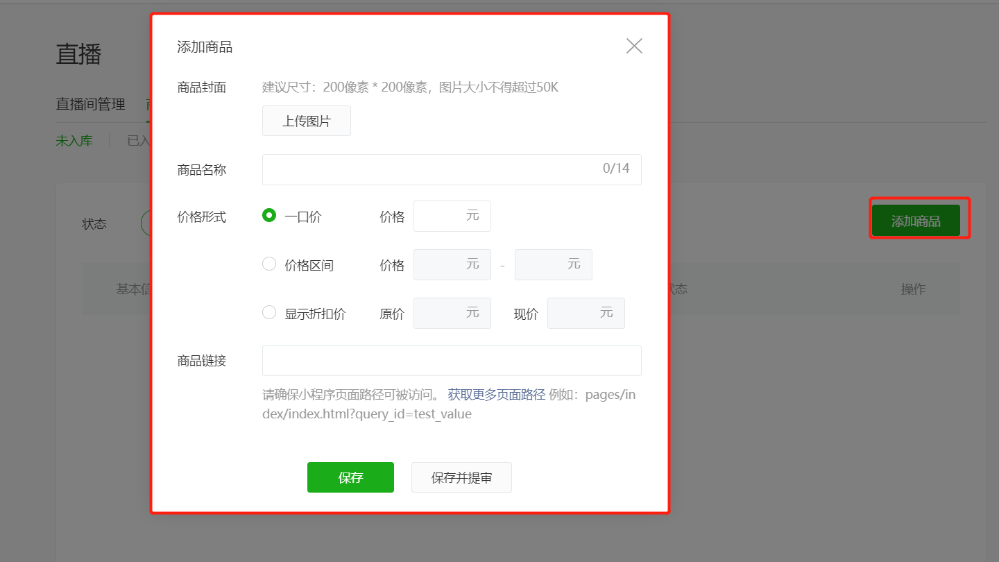 5.添加直播推荐商品: