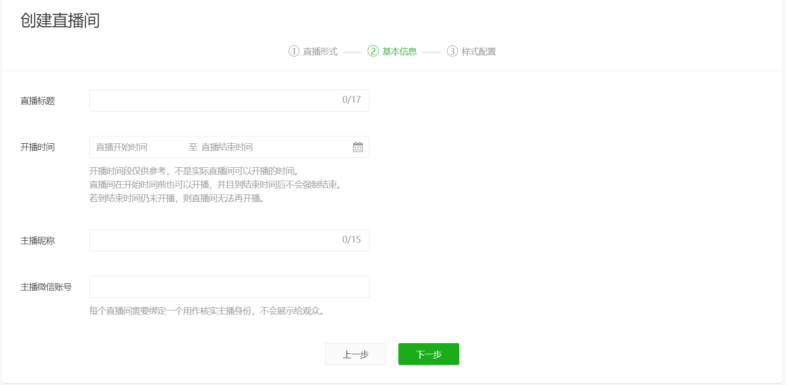 4.添加直播相关信息,例如添加直播标题直播封面主播昵称,主播微信号等