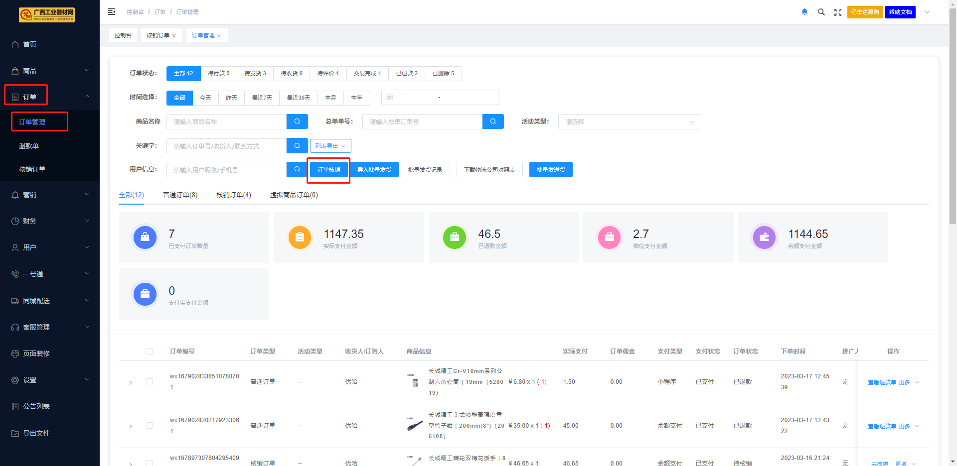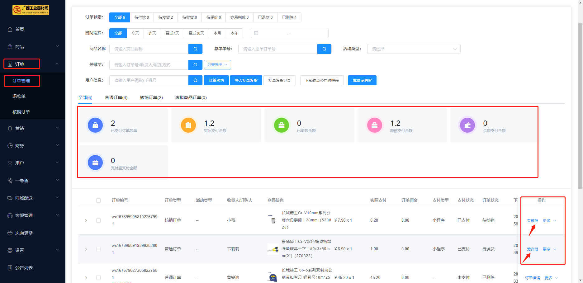 功能介绍:订单发货: 此处订单发货主要介绍在商家管理后台订单管理模块种的订单发货,包括单个订单发货、导入批量订单发货、电子面单发货、分单发货、虚拟发货、同城配送发货、订单核销。