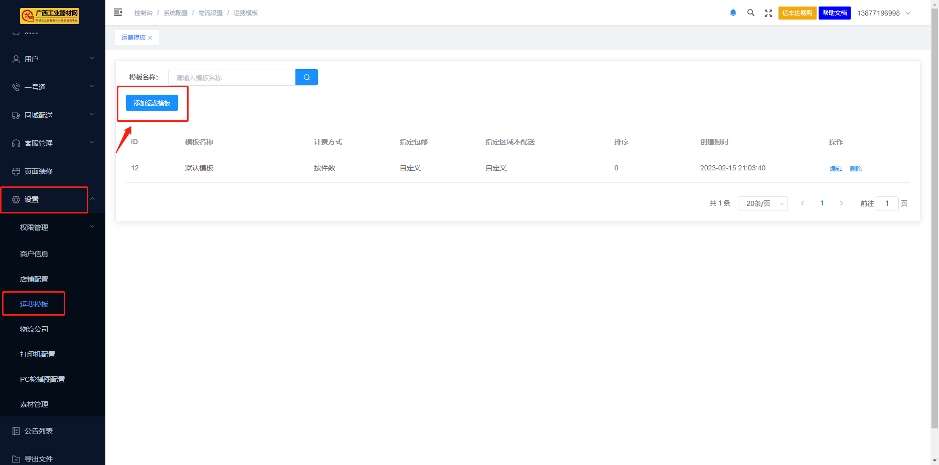 运费模板