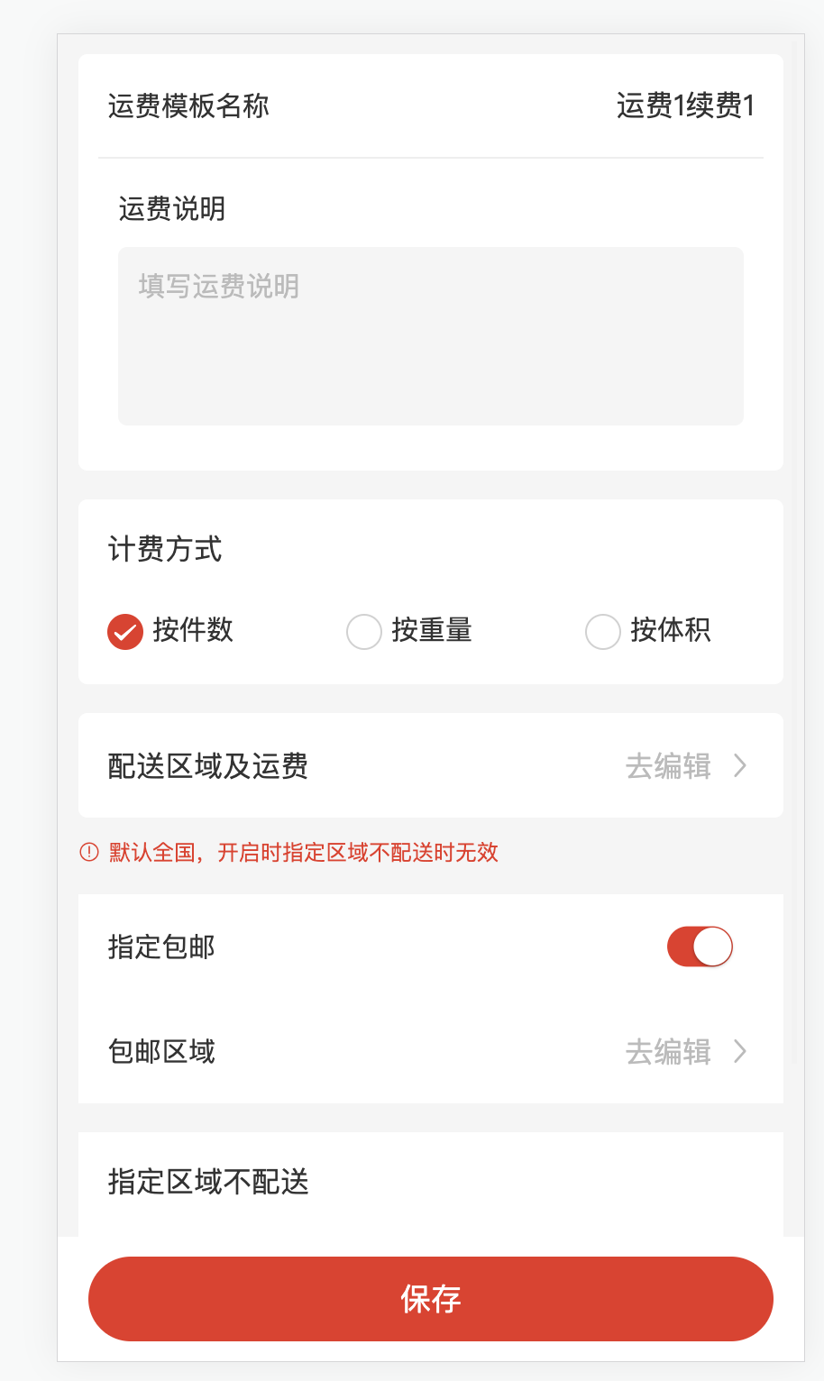 ##运费模板管理  ##编辑运费模板