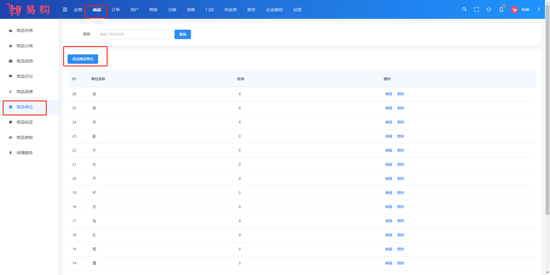 #商品单位 ##一、功能介绍 可设置不同的商品单位,更加方便管理商品 ##二、操作流程 商品 > 商品单位  ##三、添加单位