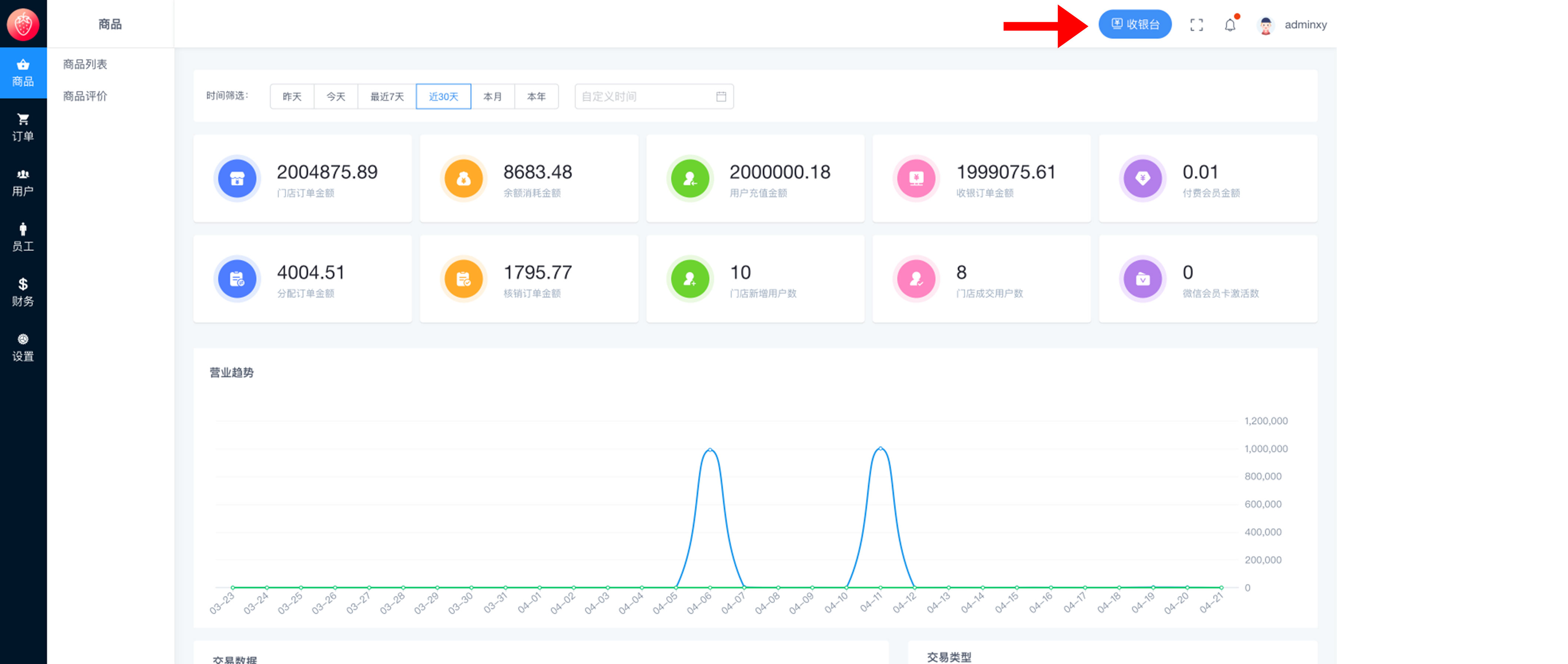 #进入门店收银台  #门店收银台 ###一、功能介绍 ####门店收银、订单发货、门店核销、退货退款等功能,合并到一个独立的店员操作台上,店员登录后即可在这里操作处理所有的门店业务。将线上电商与线下实体销售进行联通。 ####门店收银台功能,可以满足线下门店实际收款需求 1、提供了现金收款、余额收款、微信/支付宝收款等多种方式 2、整体分为结账区和挂单区两种方式 3、可对接线下收款硬件、扫码枪 4、硬件购买地址:地址 ###二、操作流程 ####入口1:门店后台 > 收银台  ####入口2:门店后台 > 员工 > 进入收银台  ###三、收银台登录 ####登录方式:账号密码、微信、企业微信 ####账号信息实现同步,极大的方便了门店的使用