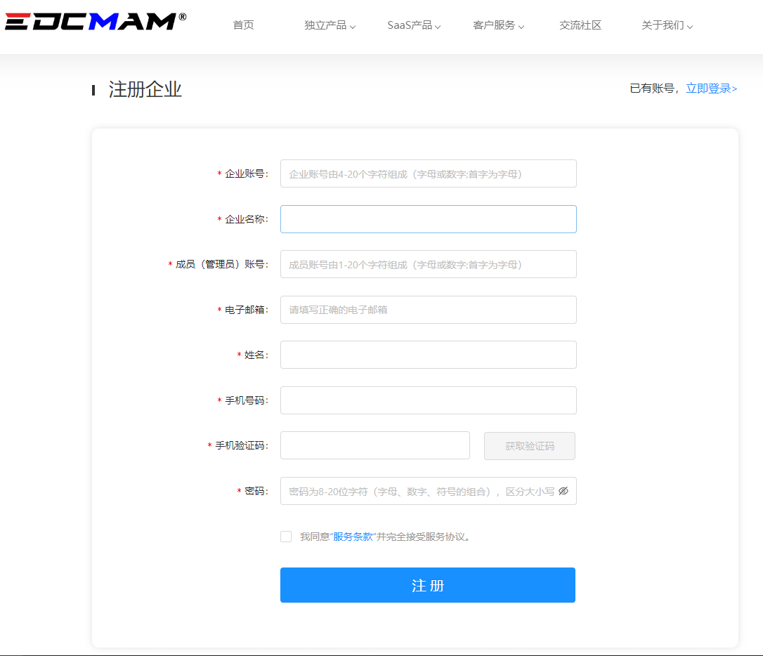 在电脑上使用任意浏览器打开b.edcmam.com/saas/reg.html域名。